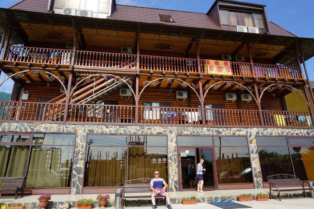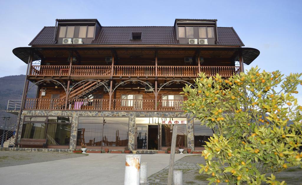 В гостинице есть собственное кафе, где можно вкусно поесть. Бар "Абхазская усадьба" также предлагает местные натуральные вина.
