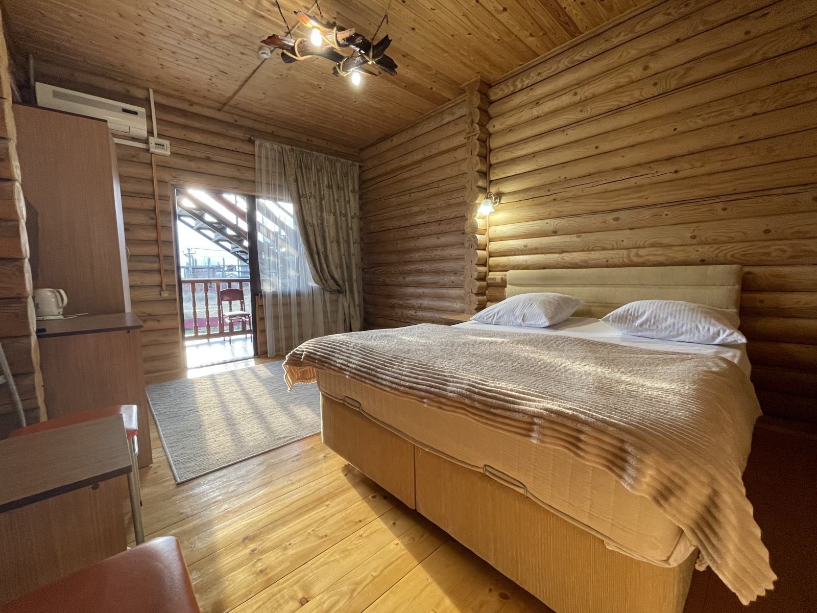 Гостевой дом "Абхазская усадьба" представляет собой трехэтажное здание с мансардой. Гости размещаются в отличных номерах с телевизором, холодильником и кондиционером, интернетом, бесперебойное электричество и вода. В номерах все сделано из дерева, поэтому в них не жарко и легко дышится. Во всех номерах есть душевые кабины. При необходимости за дополнительную плату номера могут быть оборудованы еще одним дополнительным спальным местом.